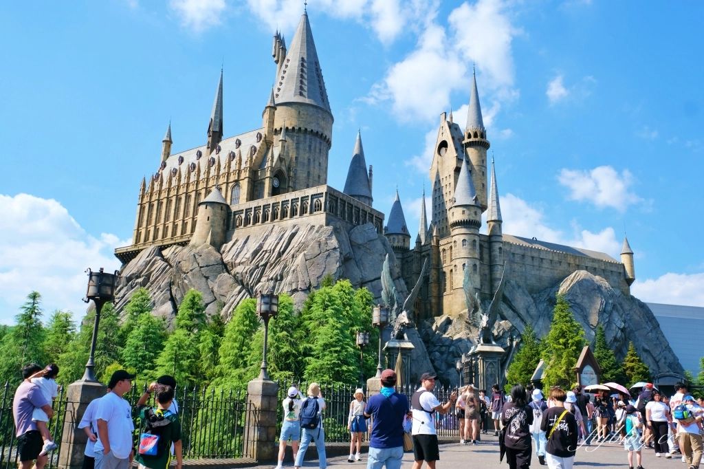 想要拍到霍格華茲城堡最美的倒影,拍攝點就在自作聰明的魔法裝備店的旁邊,當天天氣好拍起來真的是藍天白雲,好療癒!