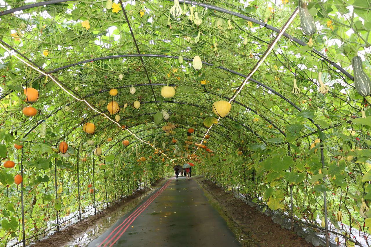 ▲淡水「南瓜隧道」免費開放到5月底。(圖/新北市農業局提供)
