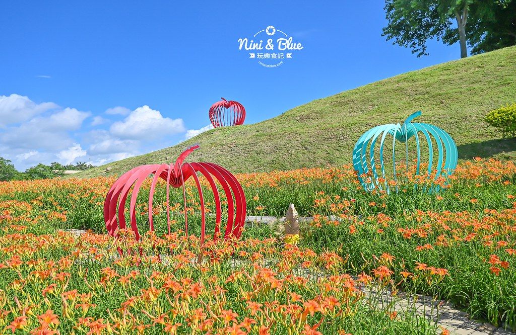 后里環保公園金針花海面積不大,不過很好拍照取景,一旁的草地、山丘、水池和向日葵花海整理得不錯,一旁還有規劃台中車泊專區和寵物公園,很適合全家人來這野餐踏青。