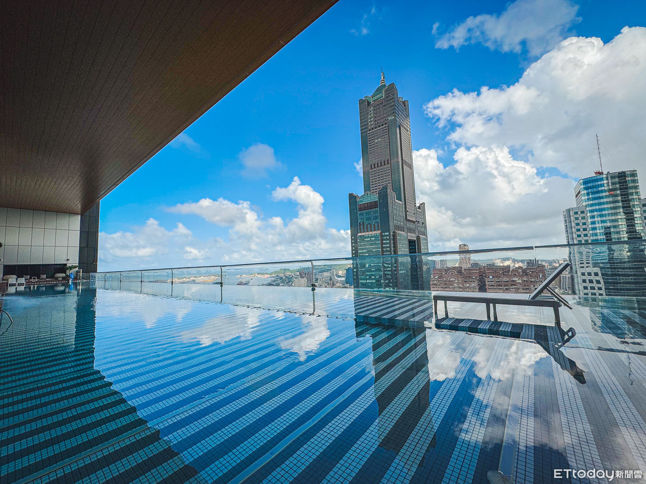 ▲高雄承億酒店高空懸挑透明無邊際泳池。(圖/記者蔡玟君攝)