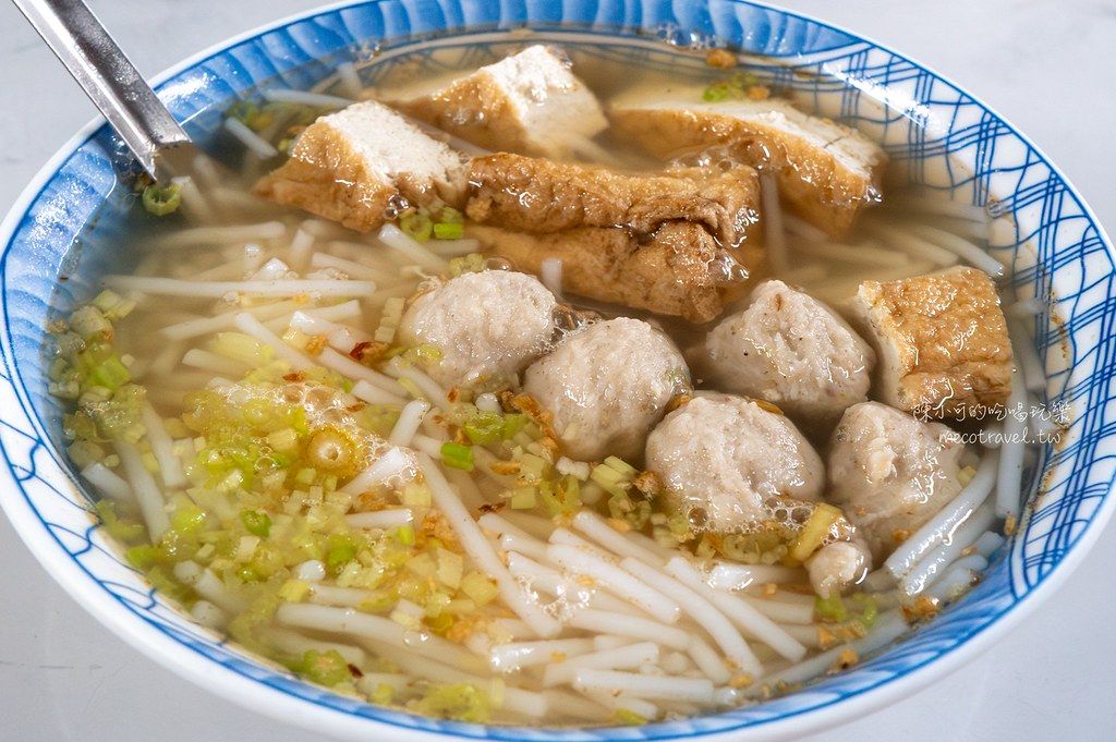 ▲魚丸米粉湯頭清甜,加入許多芹菜跟紅蔥頭增添風味,粗米粉口感Q彈,存在感十足。