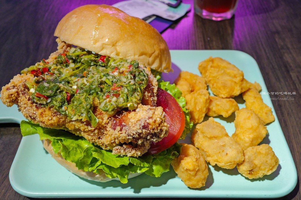 鹿境漢堡系列中的「鹿境卡啦雞腿堡」可以搭配日式照燒、泰式椒麻、韓式甜辣三種醬料。我選了泰式椒麻,這一份要價235元,但雞腿排份量就像去牛排館點的一樣大,搭配生菜、番茄跟漢堡麵包,吃完都覺得很飽。雞腿排炸至金黃酥脆,外層裹上香辣爽口的椒麻醬,麵衣酥香不油膩,雞腿排肉汁豐富,搭配新鮮的生菜和番茄切片,層次豐富。