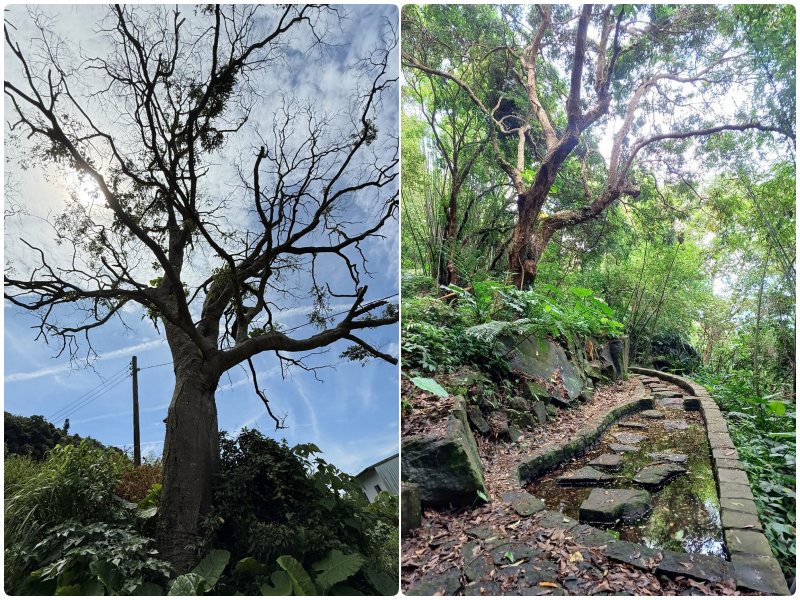 步道入口處,即可見到昔日居民使用的洗衣池與洗腳池,傳遞濃厚的生活記憶與農村風情。沿著蓊鬱步道繼續走,會遇見一棵壯觀的百年朴樹聳立在旁,是當地重要的自然地標。