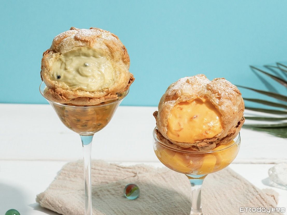 ▲▼「楊枝甘露泡芙(上)」、「百香果綠茶泡芙(下)」。