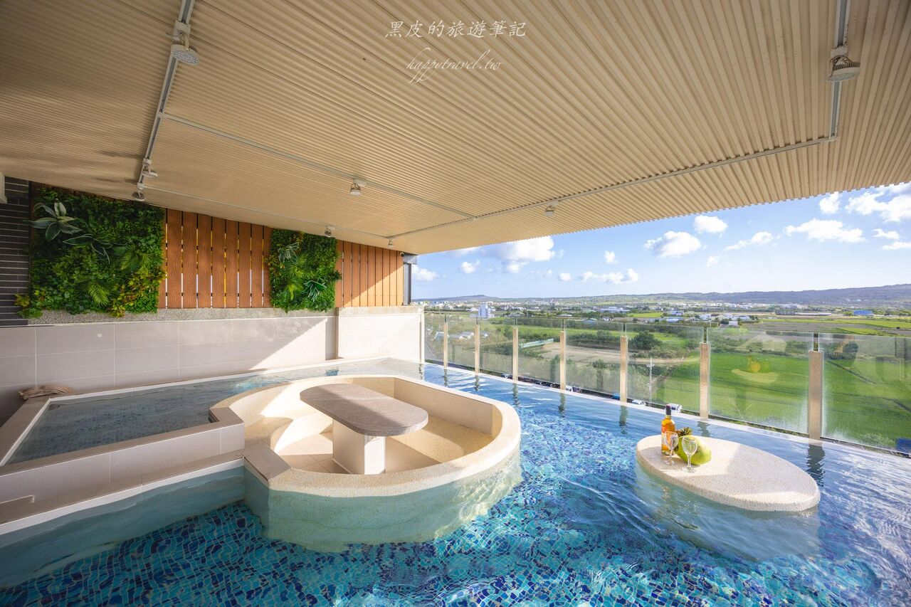 而其中最吸睛的就是頂樓的戶外露天戲水池區,採半開放式設計,坐擁無敵田野與遠山景觀,搭配清澈湛藍的馬賽克瓷磚,讓人宛如置身度假村。戶外露天區中央特設的圓形座位池,不僅造型非常抓人眼球,更是好友圍坐聊天、泡水放鬆的絕佳選擇。整體空間還融合了植栽牆與木質元素,自然與現代感在此交織出獨特氛圍。