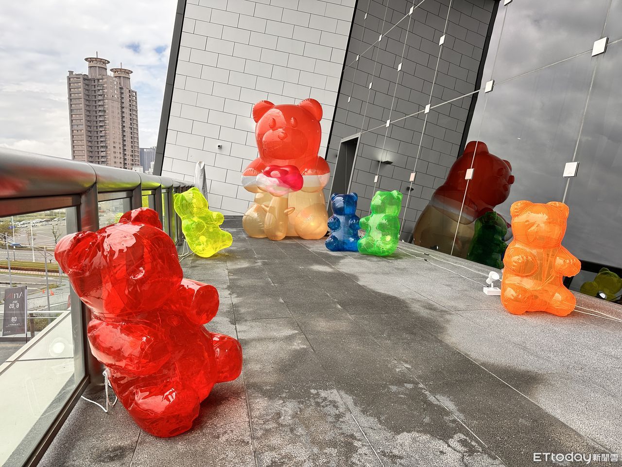 ▲「戶外藝術區」則有巨大的「彩色小熊軟糖」立體裝置。(圖/記者林育綾攝)