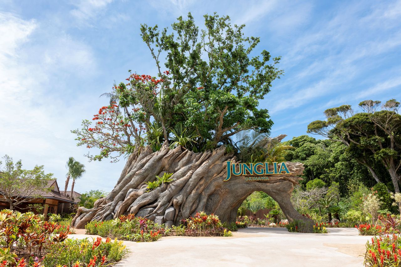走進園內,首先映入眼簾的是壯觀的「JUNGLIA TREE(ジャングリア之樹)」。高14.5公尺、直徑12公尺的巨型建築由沖繩在地10餘種植物構成,包括象徵力量與生命力的榕樹、沖繩縣花鳳凰木、福木、無花果、八重山椰子、各種蕨類等,遊客可繞樹探索隱藏圖騰、拍照打卡景點,深入感受自然之美。