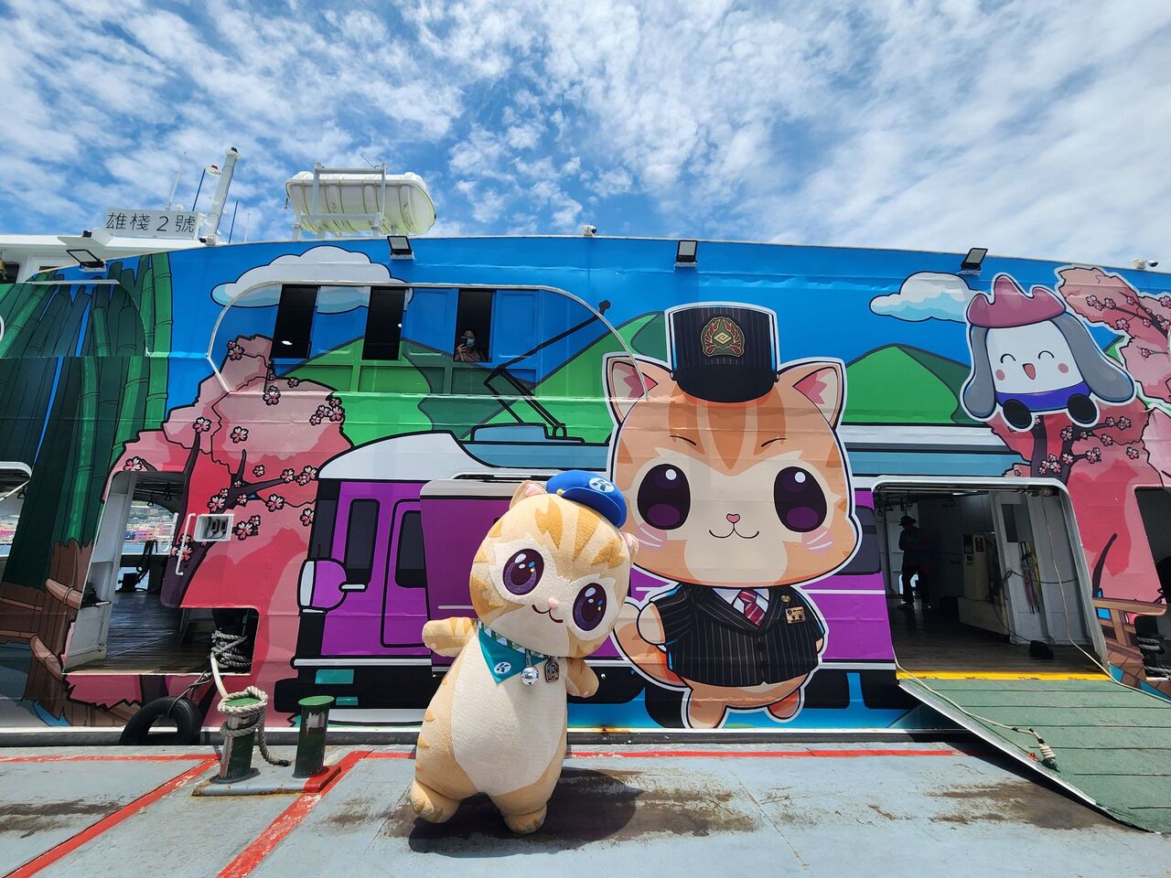 高雄捷運與高雄輪船公司攜手合作,將捷運超人氣IP「蜜柑站長」打造成彩繪渡輪海上巴士,來往於「棧貳庫-旗津」之間,主題海上巴士航班時間為每周四、五、六、日、一,喜歡可愛橘貓的旅客可不能錯過。