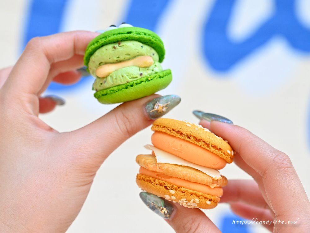 用創意顛覆你對馬卡龍的想像,更是採用減糖配方,讓馬卡龍吃起來不甜膩,就連平時不太吃馬卡龍的朋友一試成主顧。這次我點的口味都很喜歡,尤其是起司漢堡這款,沒想到馬卡龍也能做成鹹口味,喜歡馬卡龍的朋友趕緊收藏起來!