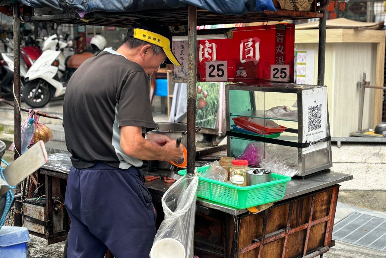 ▲我從20元開始吃,阿伯的肉圓是油炸的,也有賣貢丸湯,都是25元,真的是銅板美食!