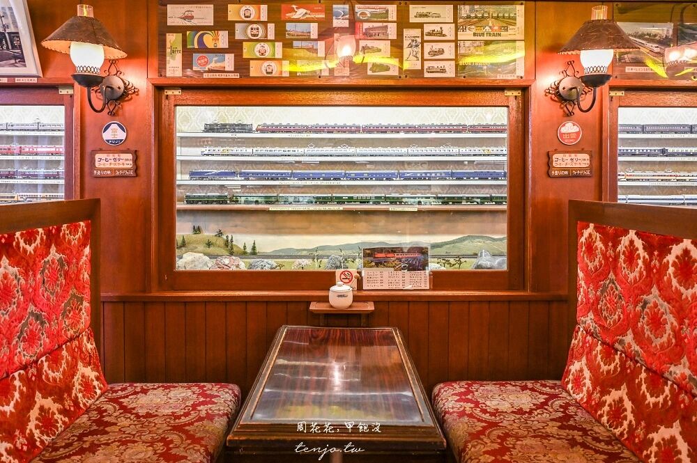 店內環境圍繞著火車車廂的元素,有著濃濃復古氛圍,牆上擺滿各式火車模型、火車車牌、火車站牌等鐵道元素,鐵道迷來到這裡真的會興奮到不行!不管是沙發座位、吧台座位都設有鐵軌經過,無論坐在哪裡,喝咖啡的時候,火車都會從你身邊駛過。