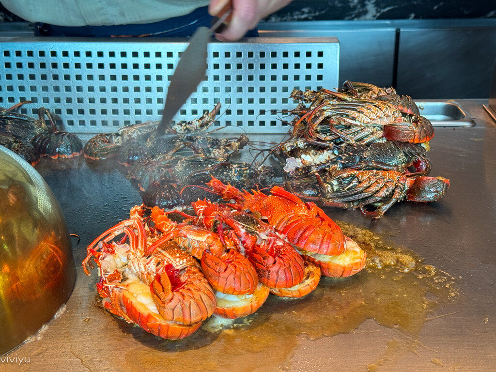 新鮮龍蝦現點現煎,肉質鮮嫩多汁,現煎干貝外酥內嫩,還有鮑魚也可以無限享用!請將龍蝦列為一開始就先取用的項目,雖然工作人員的動作很快,但畢竟煎還是需要時間。也可以餐期過一半之後再拿,就可以免排隊,沒人排隊時還可以直接拿兩盤,雖然個頭不大,但還是蠻新鮮的。