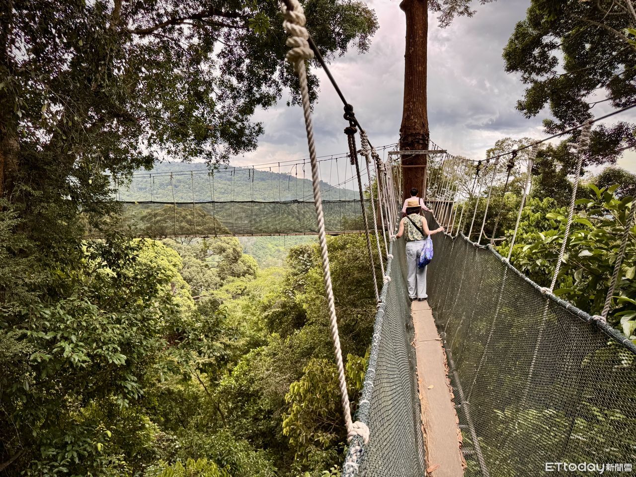 ▲波令樹頂吊橋是沙巴首座對外開放的森林冠層步道,整座步道由五段高架吊橋組成。(圖/記者彭懷玉攝)