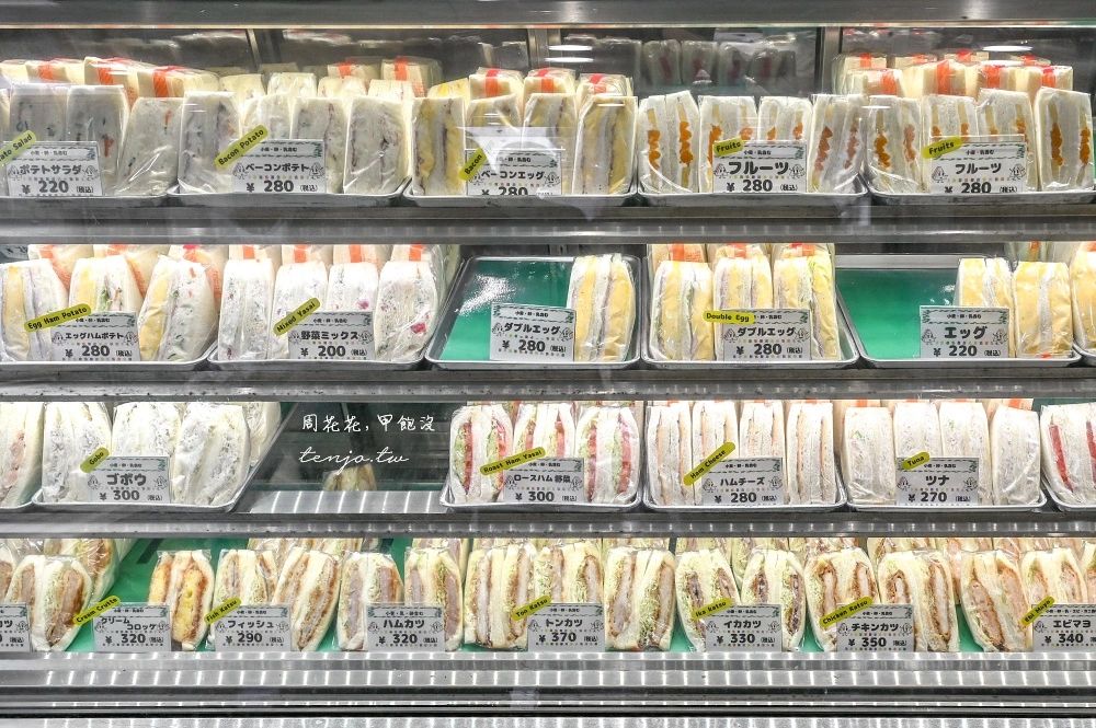 現在已經有圖文並茂的日文英文菜單,三明治口味多達40種以上,不定期還會推出期間限定口味,請依照現場供應口味為主。單價大約落在220円-370円間,雖然有漲價過,但還是蠻便宜的,比去便利商店買還划算呢!