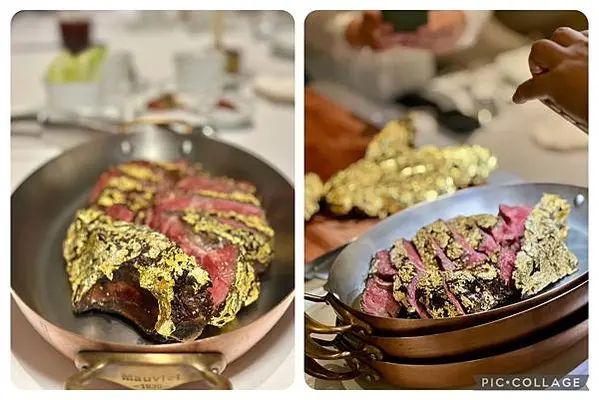 我們當天晚上吃的是限量24K黃金牛排和澳洲Blackmore 純血和牛帶骨肋眼 40 oz(四人份),晚餐套餐八道式每人6880元,若是午間套餐則是五道式每人6380元。建議邀約朋友一起吃,好友聚餐偶爾奢華一下,而且以滋味綿密的提拉米蘇做結尾,真的有滿滿幸福感。