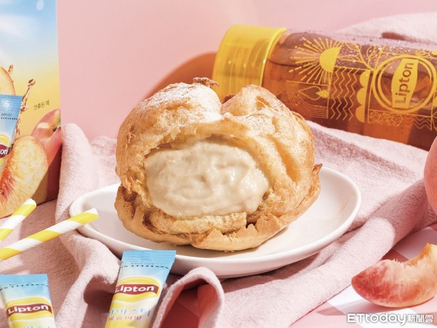 beard papa's找來立頓推出全新「立頓水蜜桃冰茶泡芙」,使用立頓水蜜桃冰茶即溶飲品結合經典卡士達醬,打造出帶有濃郁果香的「立頓水蜜桃冰茶卡士達內餡」,搭配酥鬆派皮一口咬下,炸出微酸鮮甜的滋味,每顆售價80元起。