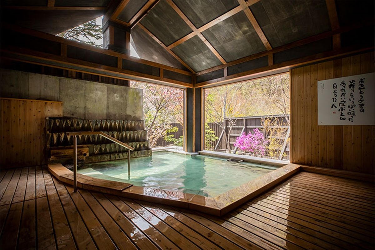 100年前的定山溪古樹、石頭、舊樑和裸露古燈泡,聚集成一座傳統風呂浴場,在100%天然溫泉水與時光緩慢流逝之下,人們心平氣和地沐浴、冥想、休養,隱隱上升的蒸氣之中,一點一滴得到來自北海道大地的大自然治癒能量。