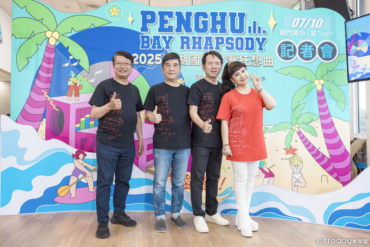▲活動記者會上特別邀請到今年演出卡司的民歌界四位傳奇歌手,分別為李建復、凃佩岑、葉佳修及陳宏銘。(圖/澎管處提供)