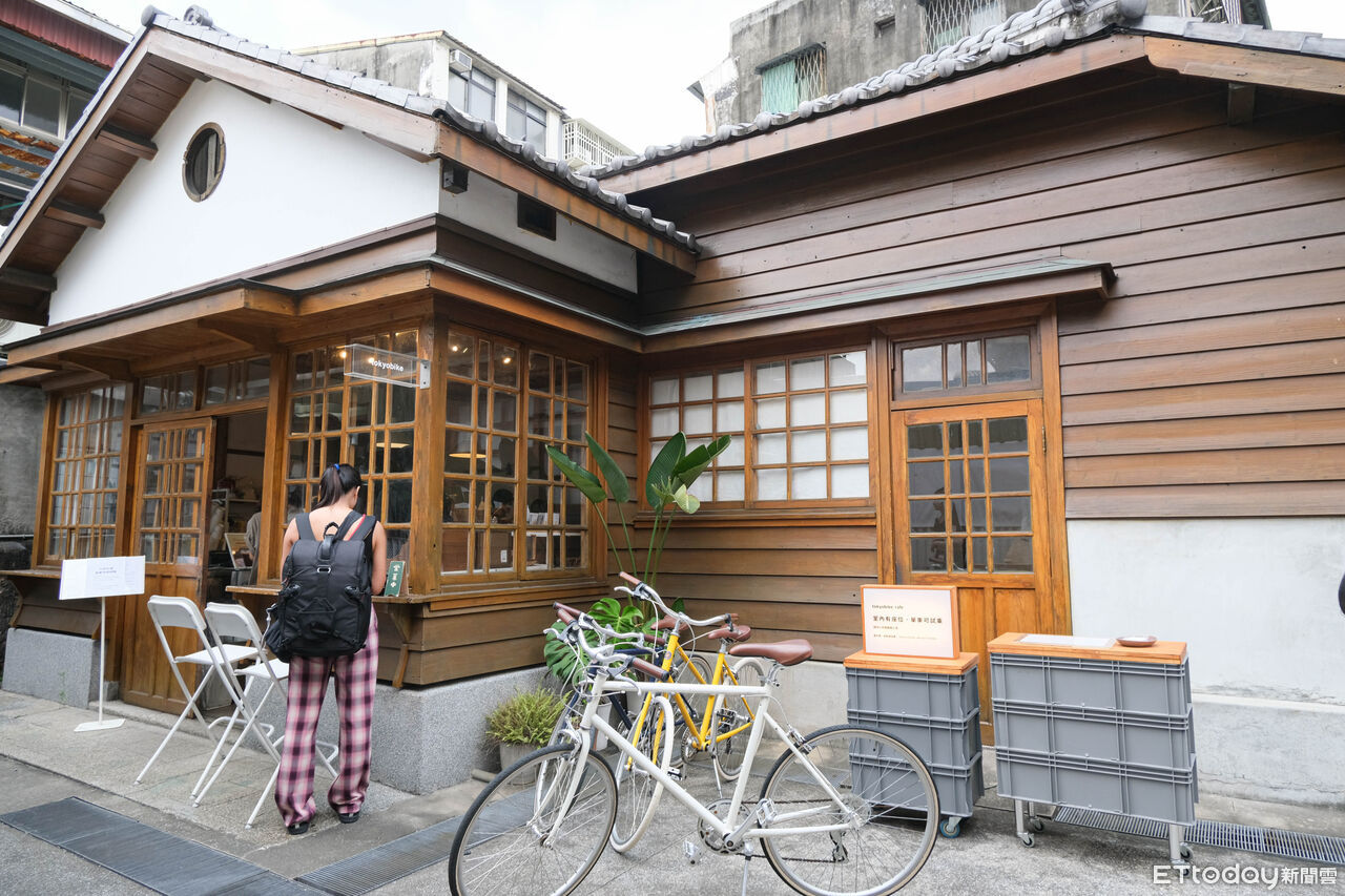 新富町文化市場後方,竟然藏了一棟日式宿舍,「tokyobike cafe」於2021年底從民生東路三段搬遷至新富町文化市場,除了原先就有的單車相關物品販售,還多了日式木造古蹟做為底蘊,並搭配深色布簾、植栽,營造出京都街屋的氛圍。