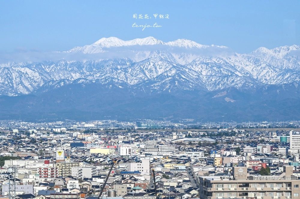 富山市免門票、免費景點推薦這個!富山車站走路就能到的富山市役所展望台,位在市中心70米高空的絕佳地理位置,天氣好的時候可以清楚看到立山連峰,景觀美到讓人心曠神怡,開放時間到晚上9點,360度無死角的視野,也是推薦看富山夜景夕陽的好去處。