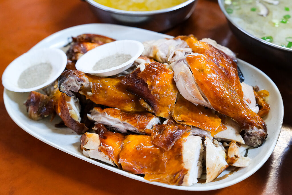 一隻是650元,送上來之後還會附一碗雞油,服務人員有交代可以沾點雞油吃,雞肉烤到外皮呈現黃金色澤,吃起來脆脆的;而且雞肉也不會乾柴,確實是好吃的,而且香氣十足。