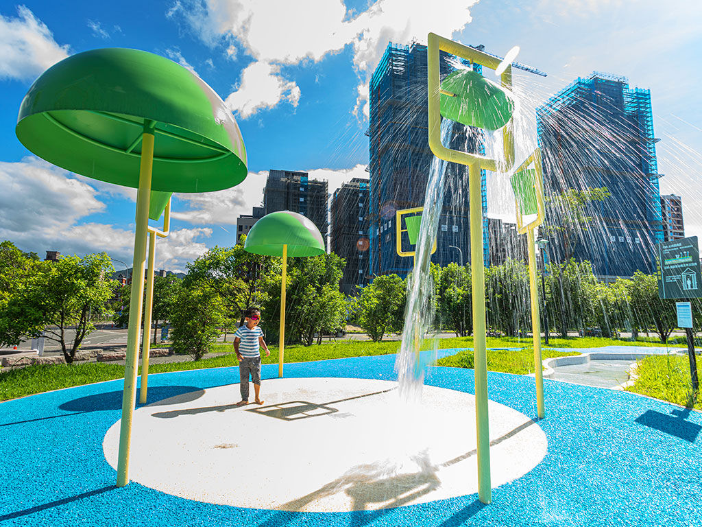 坐落於新店央北重劃區的十四張歷史公園,透過農村水圳意象設計,結合防災功能,是新北市首座機能可轉換成防災用途的公園,園內打造了10大共融特色遊具,包含2層樓高的穀倉溜滑梯,還有一座水圳遊戲區,每到夏天就會開放,讓公園瞬間升級成水樂園。