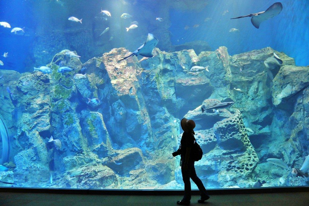 進入館內,映入眼簾的就是「男鹿海大型水槽」,超過800噸水量,感覺自己彷彿置身於海底的夢幻場景。還有美麗的魟魚悠遊水中,陽光從頂端灑落,水面波光粼粼,令人感到寧靜與療癒。
