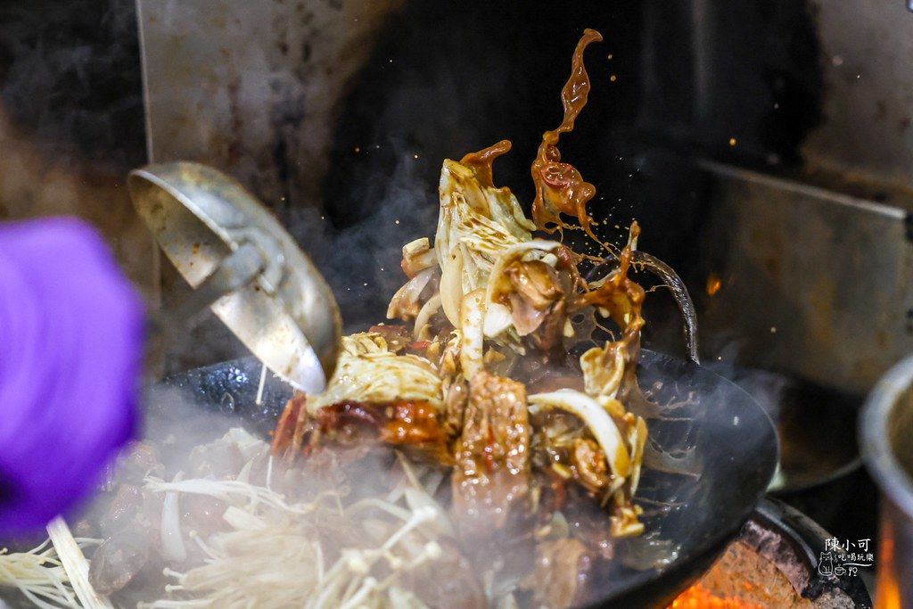 ▲看著師傅炒鴨架的畫面,鍋氣十足,空氣中瀰漫烤鴨香與鍋香。