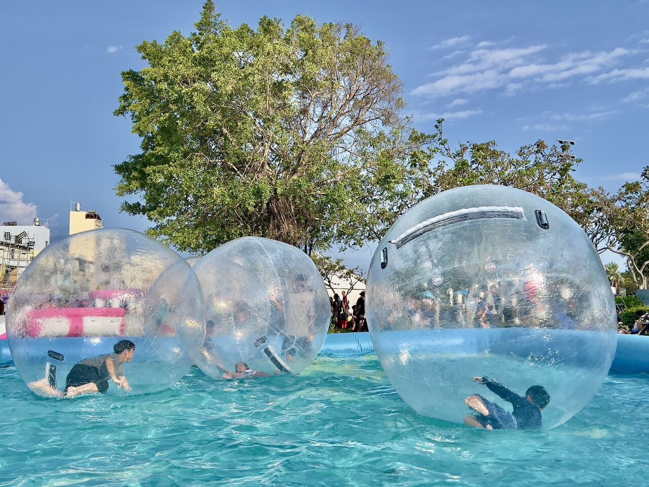 ▲▼大樹水樂園有水上步行球、手搖船等設施。