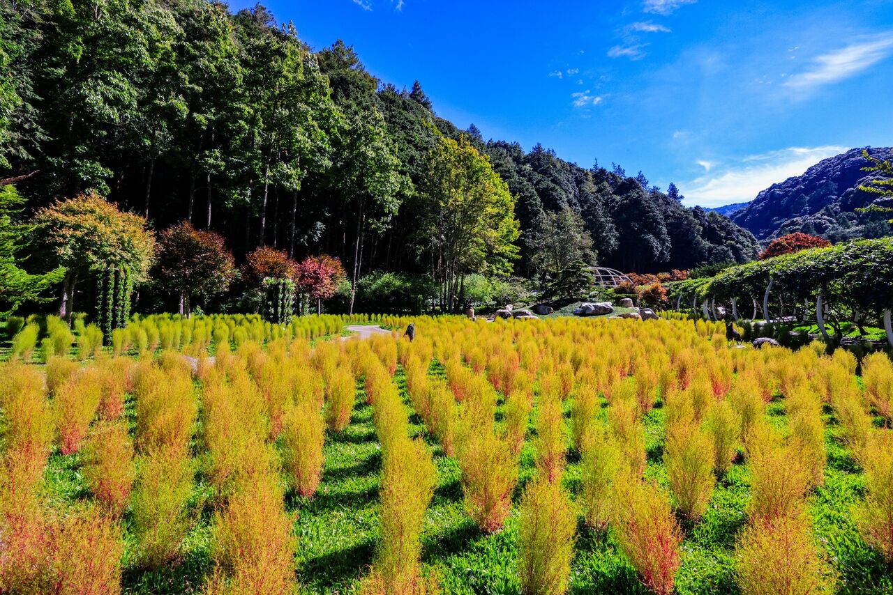 位於南投竹山、海拔1600公尺的杉林溪森林生態渡假園區,夏季氣溫約14度至24度,不只是避暑勝地,在盛夏過後,8月中布置上全新波波草地景,近日根部已從原本的翠綠轉為橙紅色。