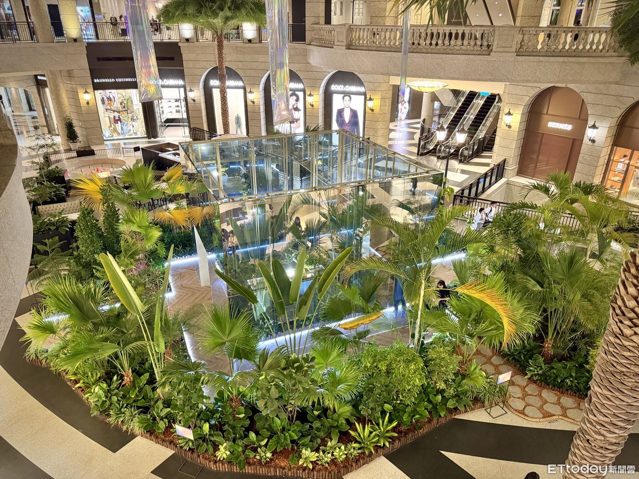 信義區「貴婦百貨」BELLAVITA又下重本變身!在迎接16周年慶之際,於中庭打造綠色花園玻璃屋,周圍布滿真的植栽,白天時陽光穿透中庭穹頂,讓空間滿溢自然光源;夜晚則在藍色燈條勾勒下顯得更加夢幻,即日起展到9月21日止。