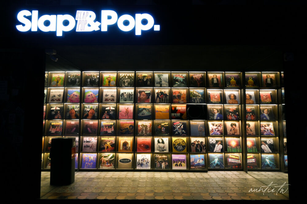 每次跟朋友來到東區聚餐,吃完正餐總是會忍不住來個酒精接力賽,這裡的餐酒館酒吧實在是太多了!這次發現一間十分、非常神秘的酒吧「Slap&Pop」,在地圖上找到地點後卻找不到門口在哪,只有一道唱片牆,想了一下不太對勁,直接貼近牆面看有什麼機關,果然有按鈕,一按下去門立刻就打開了,哇賽!一進門就那麼有趣,實在是太期待了!