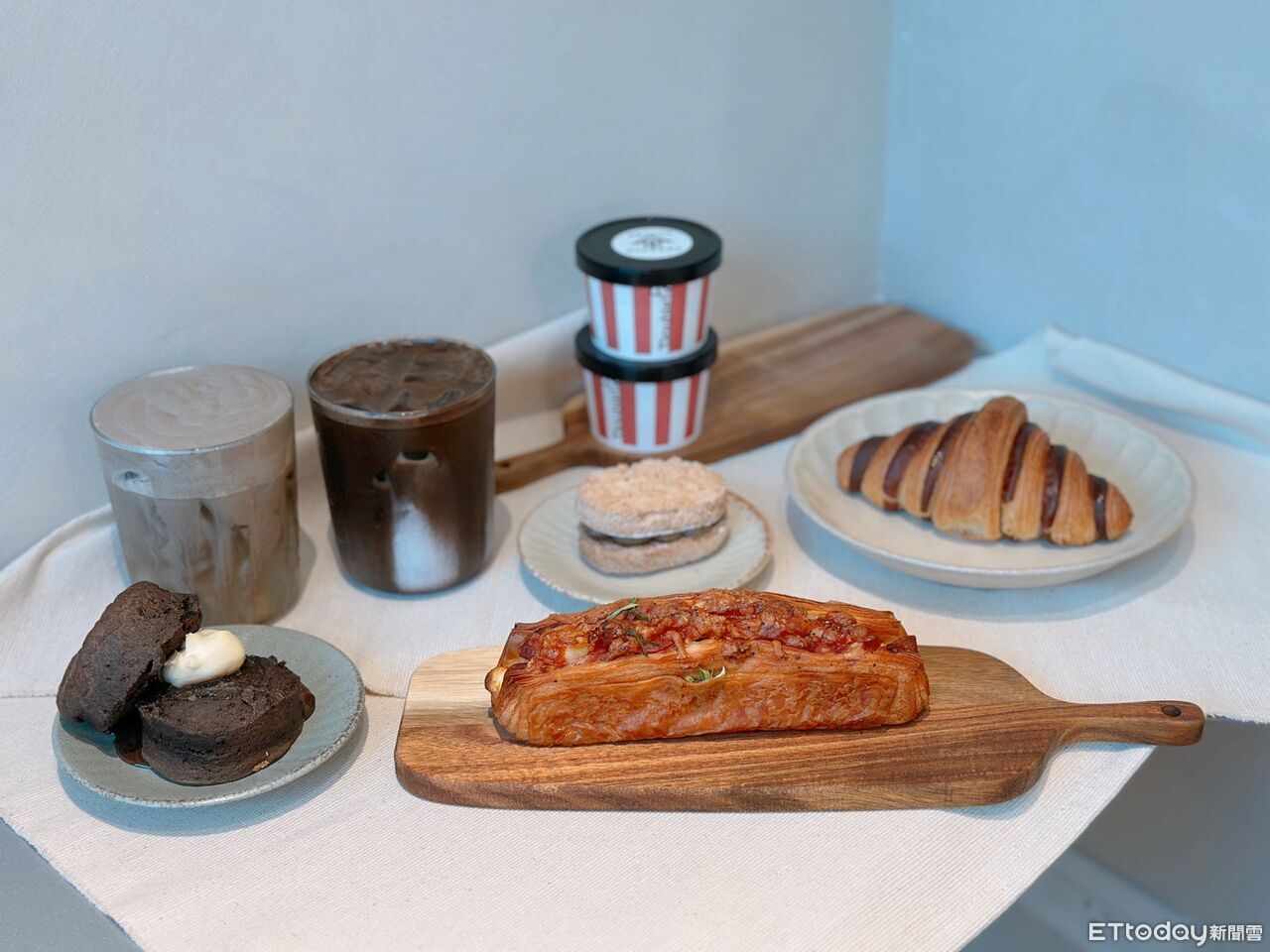 「焙茶達克瓦茲」內餡選用祇園焙茶調製成的濃郁焙茶奶油醬,並夾入Q彈黑糖蕨餅,售價75元;「焙茶生乳可頌」則結合祇園焙茶餡,售價80元。還有青蒜香腸可頌、蜜汁叉燒可頌等鹹食,售價皆為75元。