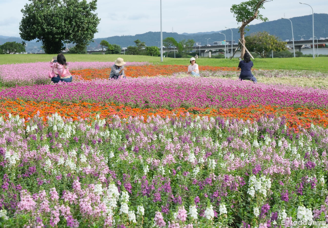 趁好天氣賞花去!台北2處河濱公園均有花海綻放,其中,美堤河濱公園迎來野花系花海,粉紅雙色圓仔花、天使花、百日草等超過5萬盆草花盛開中,鋪蓋出夢幻且漸層的花毯,預計美到10月下旬。另一處向日葵花海在大佳河濱公園,4.5萬株光陽種燦爛盛放,觀賞期預估到10月中。
