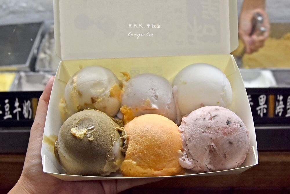 冰淇淋口味每天可能都不太一樣,大多維持著十多種,我前前後後吃過這家店好幾次,有些基本款是常態販售,但像季節水果這種就有時間性,大家來到現場就隨緣選擇吧!我每次來都有、自己也很愛的口味是木瓜牛奶、芭樂、焙茶、日月潭紅茶,推薦給大家有看到也能照著點。