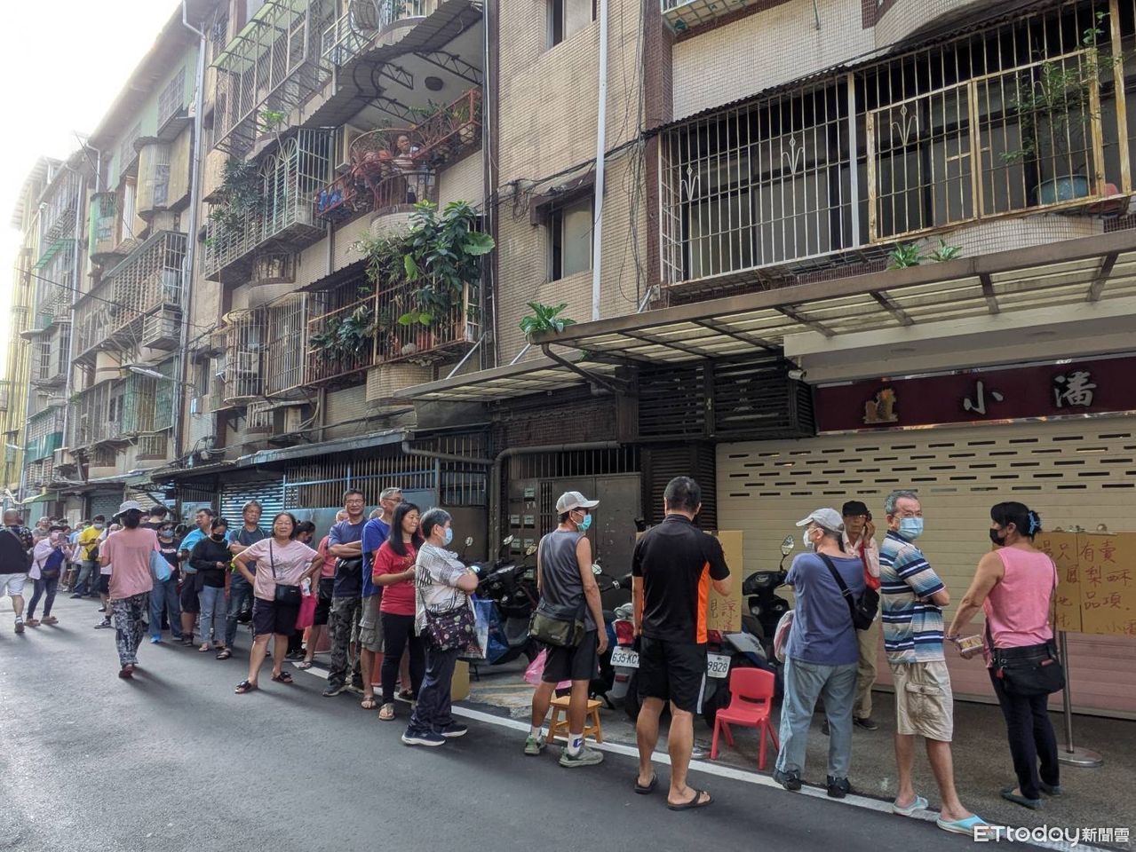 ▲小潘蛋糕坊排隊人潮從店門口綿延到巷口後,再轉彎到下一個路口。(圖/記者黃士原攝)