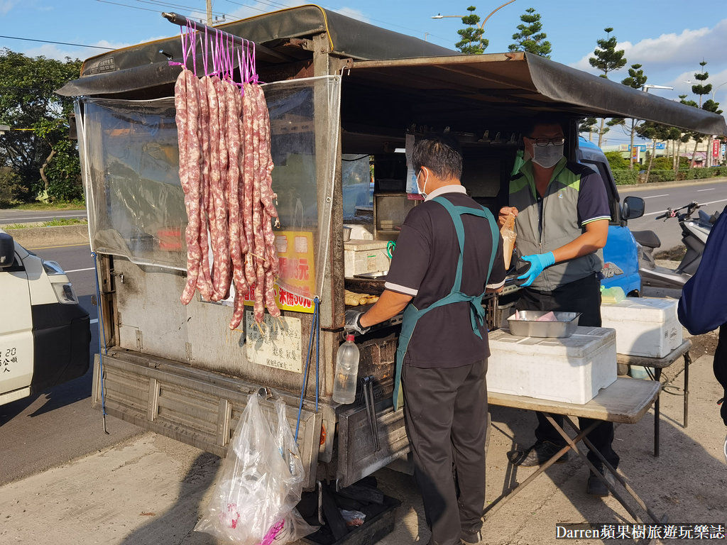 外觀就是一台不太起眼的藍色發財車,但是經過就會看到有人來買香腸,樹小編這次運氣很好,平日來買的人不算太多,之前看到網路鄉民照片排隊人潮很長,而且也會有不少重機族來買。