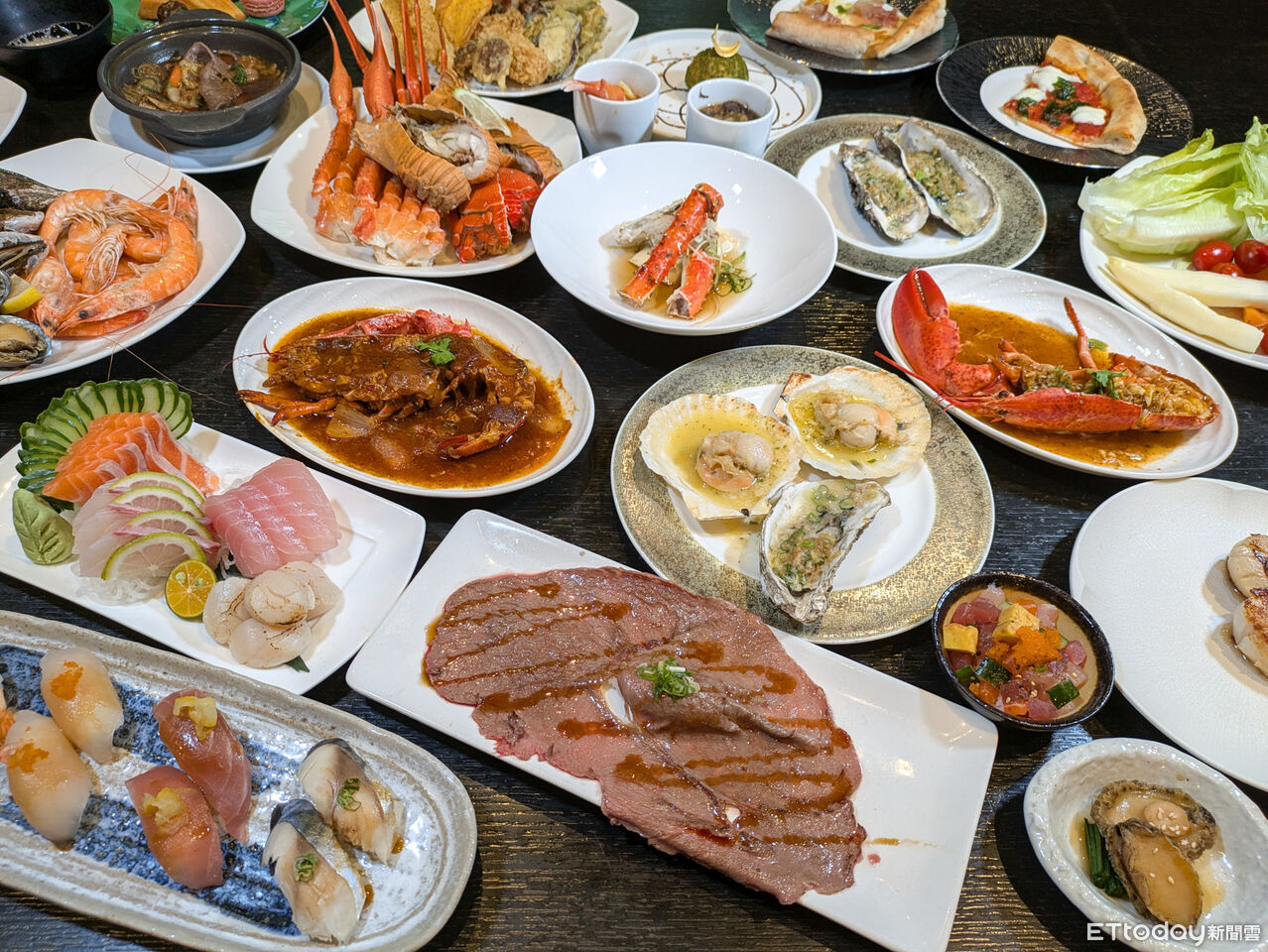 其他必吃菜色還有「熱饗區」的響螺佛跳牆、綿滑細膩的松露鴨肝慕斯蒸蛋、現切的爐烤牛肉、泰式豬肋排、台式經典外婆紅燒肉、法式紅酒燉和牛頰、菲律賓蒜香海鮮烤飯,以及「義饌區」現烤披薩搭配現炒義大利麵。