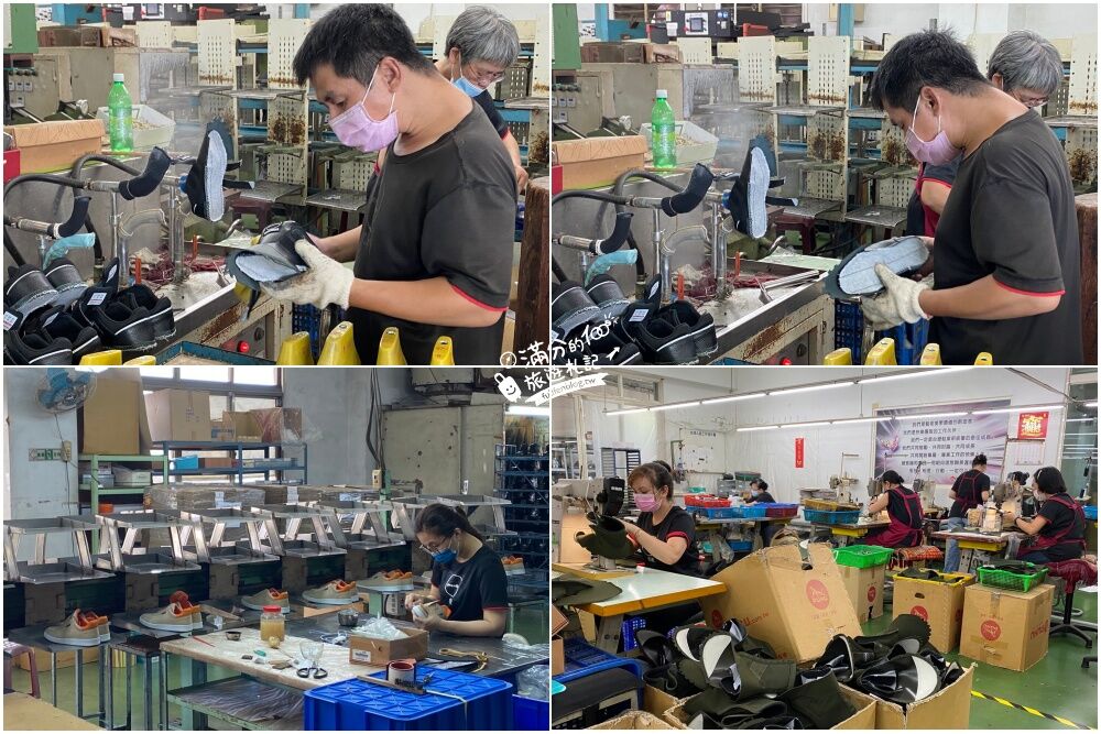 跟著導覽人員,我們可以看到鞋子從無到有的過程,工廠裡的師傅都是擁有豐富經驗老師傅啦!其實要製作一雙鞋子,整個步驟流程是非常的繁瑣的。彪琥堅持手工打版,講求鞋面的線條美和立體比例,經過師傅的專業技術,一針一線縫出最舒服的鞋子,全開放式的空間,讓旅人能近距離觀察鞋子的製程,你會覺得好神奇,就這樣一步步完成到最後一關。