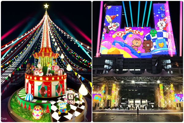 觀旅局表示,2025新北歡樂耶誕城以「馬戲嘉年華」為主題,與全球知名的「LINE FRIENDS & LINE FRIENDS minini」角色IP合作,同樣在市民廣場、站前廣場、萬坪公園、府中廣場以及板橋轉運站進行布置,營造耶誕歡樂氛圍。
