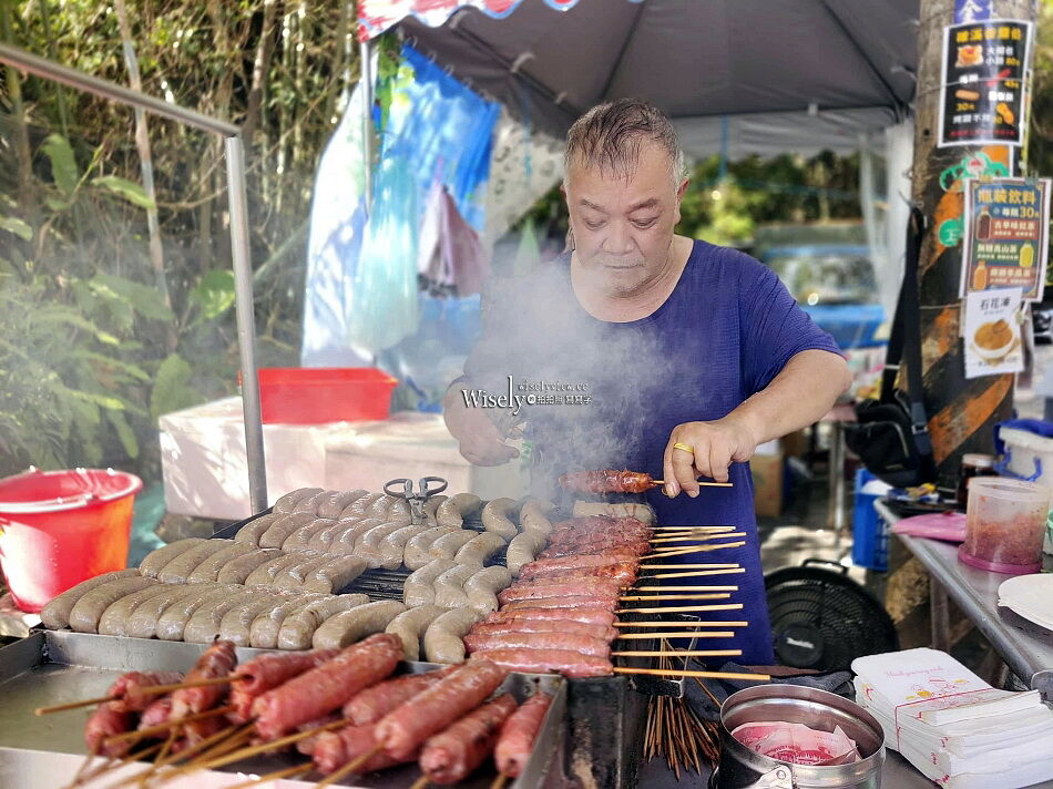 這家位於宜蘭通往礁溪五峰旗瀑布與礁溪老爺酒店的「礁溪香腸伯」,就在跑馬古道南入口處路邊擺攤。印象中,在地人很久以前曾跟我說過,這是登山健行客會光顧的小吃,十多年前也吃過一次,但當時沒像現在那麼多樣化,而且排隊人潮眾多!