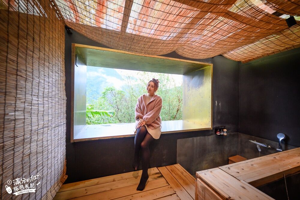 森沐真的超美,服務人員還會先幫旅人放水,這個服務很棒,走進湯屋時,就能感受到溫泉的蒸氣。森沐湯屋的角落就是盥洗間,洗手間在湯屋外,沒有獨立廁所,這點就是扣分的地方,但也因為不同的設計,才能造就這樣的景觀湯屋囉!