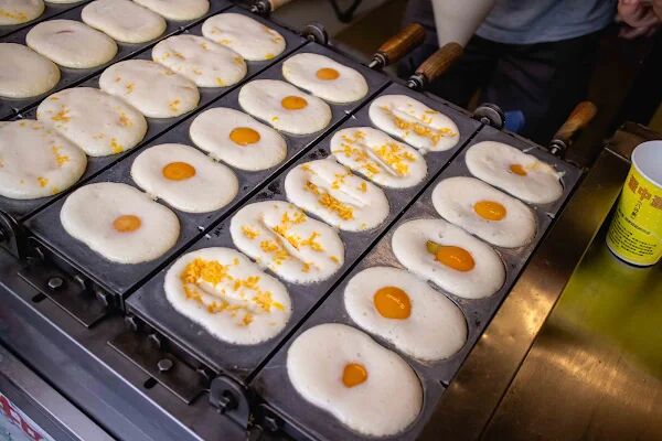 ▲雞蛋糕裡頭包雞蛋也太酷,一天只營業3個多小時,大口咬下會爆漿。