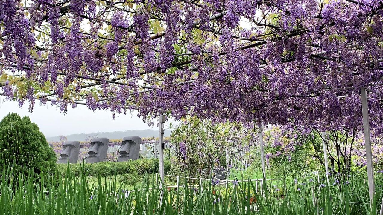 另外,台北市士林區「台北花卉村」同樣有紫藤花,免費對外開放,一入園區就會看到三座棚架布滿紫色花瀑,花季落在每年3月中旬,搭配橘紅炮仗花盛開,為年節增添喜氣。