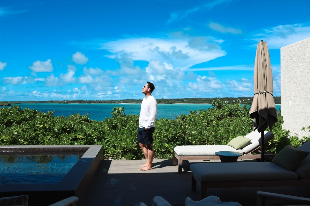 在結束開箱前,我特別參觀了館內最神秘的房型「Kamii House」。這棟未公開販售的 Villa 名稱取自日文「海龜」,象徵守護與永續。房價高達每晚二百五十萬日圓,可同時欣賞日出與日落,並擁有大型私人泳池與戶外BBQ空間,甚至能邀請專屬主廚到 Villa 料理。當時據說下一位入住的客人,正是搭乘私人飛機從台灣前來。站在露台邊,望著碧海藍天的無際邊界,那一刻我終於明白:這裡的奢華,不只是價格的象徵,而是能讓人回歸純粹、與自然靜靜共存的極致。
