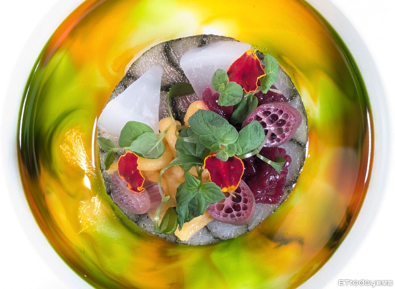 「泰味新境」為半年主題企劃,預定將為兩階段限時菜單,首波明天登場,以海鮮料理為主軸,參與菜單研發共有6位泰國名廚,開胃菜「鮪魚|香茅|拉帕」由COAST餐廳的共同創辦人Ian Kittichai設計,米其林一星「Le Du」主廚Thitid Ton Tassanakajohn帶來「青甘魚|甜菜根|鍣葒」以及招牌「當日鮮魚|牡蠣|苦瓜」,展現具高度張力的當代泰式海鮮風格。
