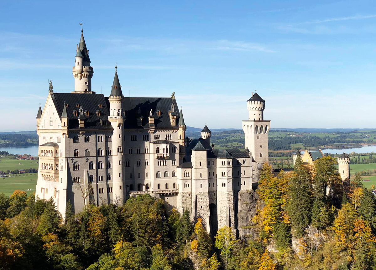 遠遠望見新天鵝堡,彷彿走近一場浪漫主義的夢。這座以騎士傳說為藍本打造的童話城堡,在春日嫩綠的林海與藍天襯托下,每一線條都顯得優雅而純粹。站在橋上眺望,眼前景象宛如迪士尼動畫,讓人忍不住駐足。