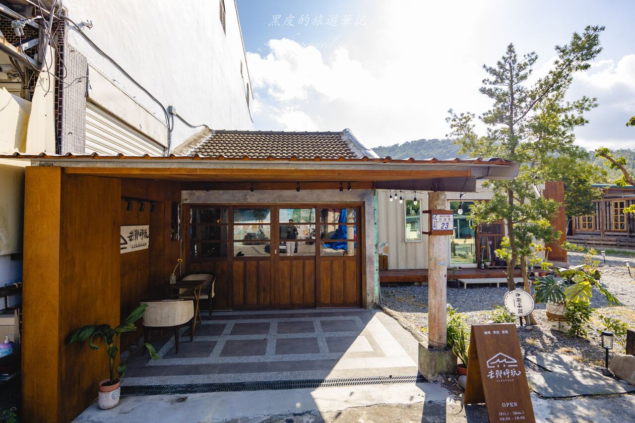 去那呼玩隱身在大武的巷弄裡,從遠遠的馬路邊看過去,這裡不像一般的網美咖啡館那樣刻意漂漂亮亮,它更像是村落裡阿嬤家隔壁的那間小店,木頭香、陽光味、還帶點海風吹過的感覺。斑駁的老屋瓦頂、木製拉門,加上一旁貨櫃屋的白色牆面與大片玻璃,一新一舊的組合,卻意外安靜又自然。前院撒著細碎石地,被幾棵樹、幾盆植物點綴得剛剛好。陽光正好的時候,影子落在地上,很喜歡這樣自然的氛圍感。