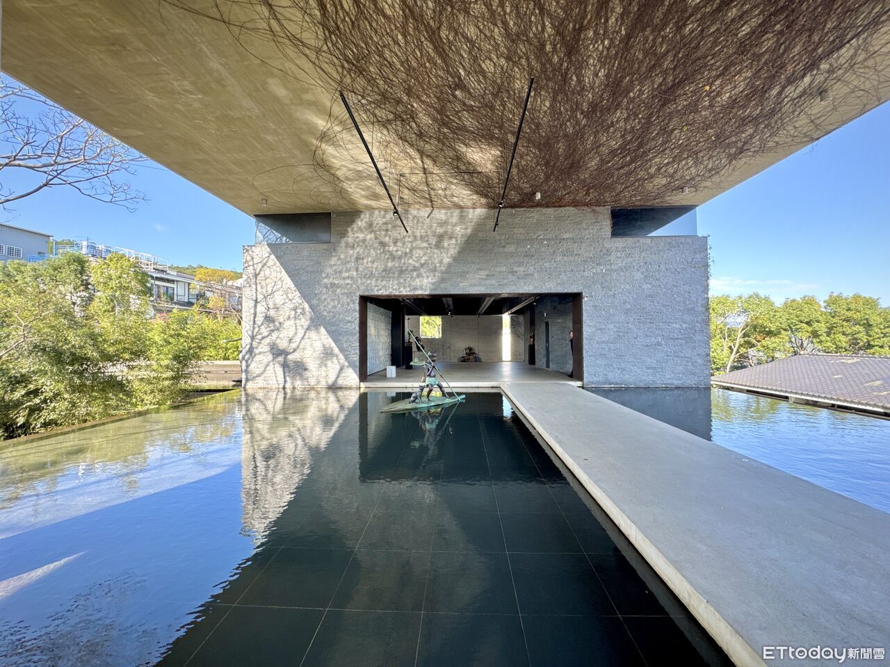 ▲▼沿著茂密的竹林空橋前行,隨即展開藝術探索之旅;雙邊無邊際水池倒映自然景觀。(圖/記者彭懷玉攝)
