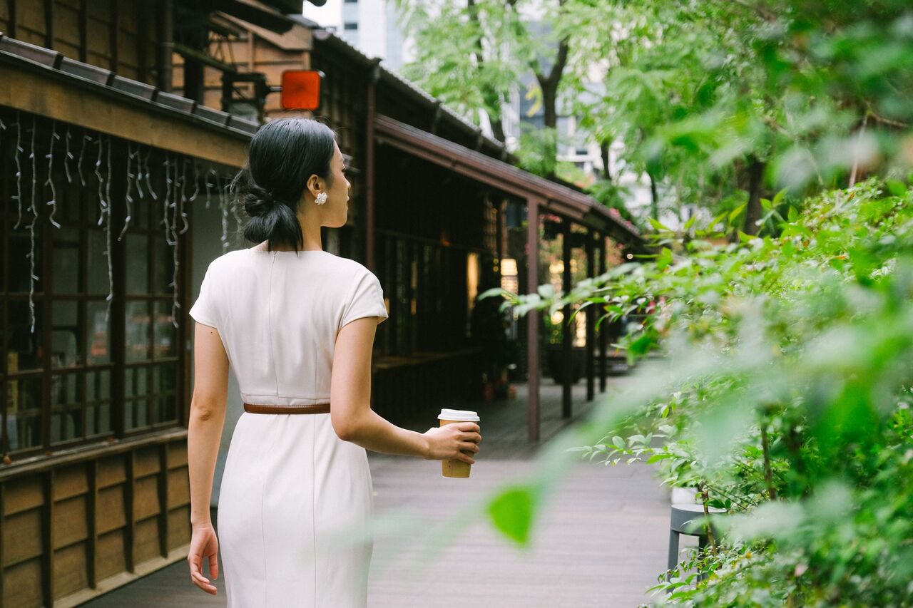 拍攝觀察: 以人物與環境互動作為主軸,手持咖啡杯行走於木造廊道或紅磚牆旁,能呈現輕鬆自然的生活節奏;利用植栽作為前景,可營造被綠意包圍的層次感,午後柔和光線特別適合拍攝具有故事感的日常影像。
